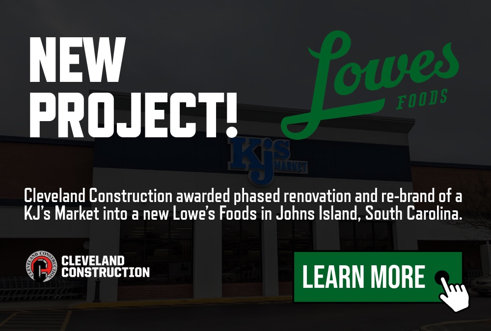 Cleveland Construction, Inc. is pleased to announce the successful completion of the interior renovation of the 42,497 square-foot KJ’s Market Store, now transformed into Lowes Foods #293 in Johns Island, SC. The project achieved substantial completion on March 12, 2026, allowing the store to open its doors to the public following a VIP gathering the evening prior.