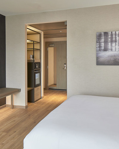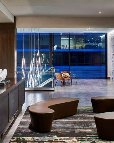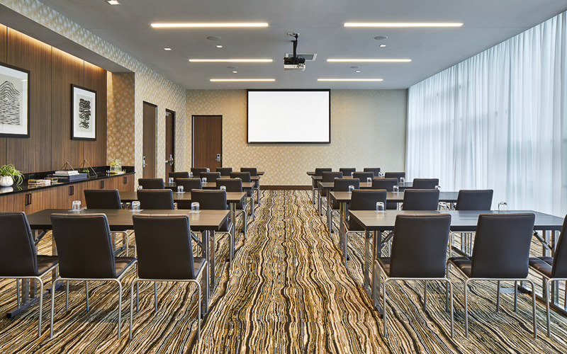 This 5-story, 81,280 SF, European-style hotel features 145 design-savvy guestrooms with sleek furnishings, open closet systems, and hard surfaces. Showcased in a glass façade, the property also includes amenities such as a communal lobby, a multi-functional kitchen, meeting and work areas integrated into the hotel's public spaces, a bar and lounge, and a 24-hour fitness center.