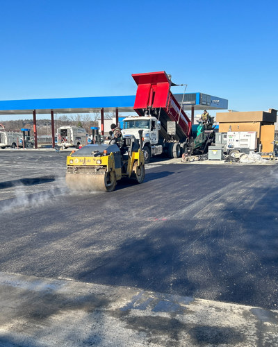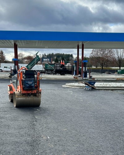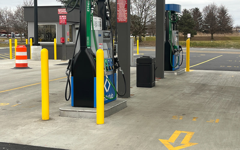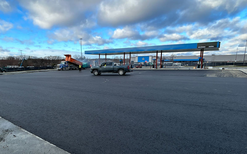 Site work scope of work involved selective site demolition, earthwork, and the installation of fuel station equipment and piping. Fuel station work also included canopy columns, concrete, both standard and heavy-duty asphalt paving, site lighting, landscaping, and signage.