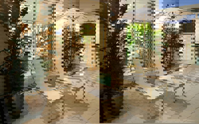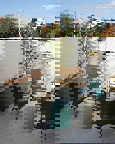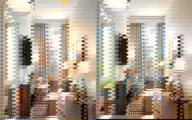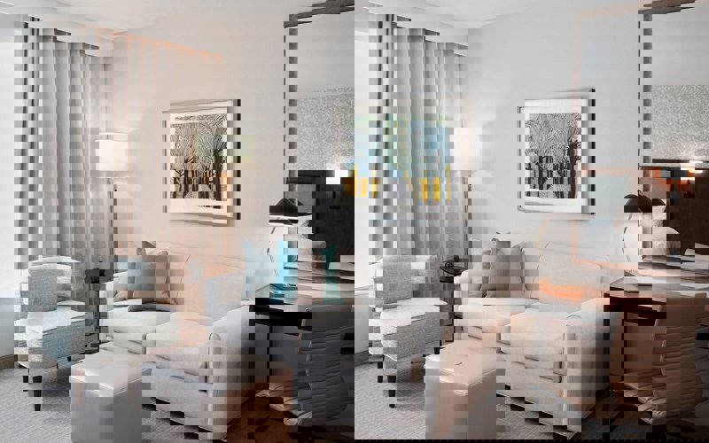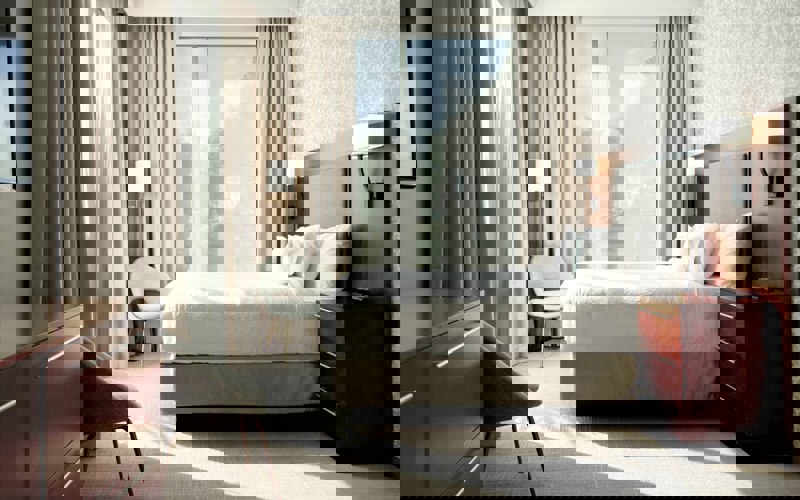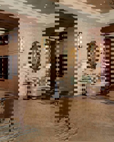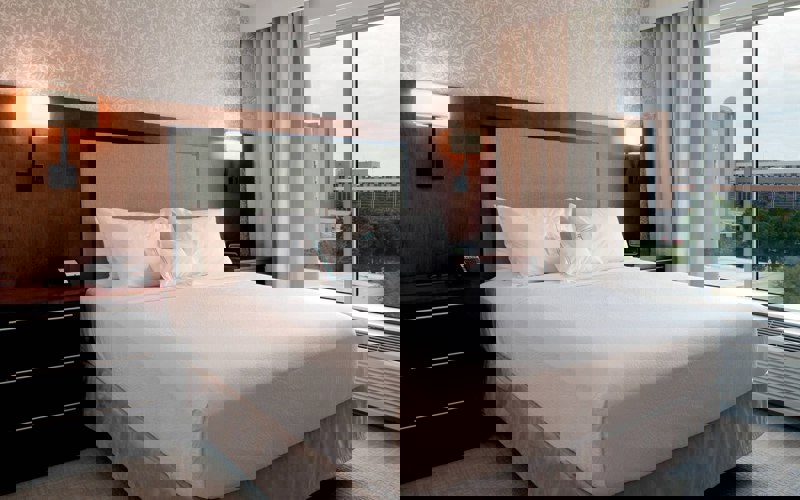 Another unique feature is that the access control and public spaces will be shared with the neighboring Hampton Inn, also owned by HG Management. Construction on the new hotel began in March 2019 and was completed in August 2020.