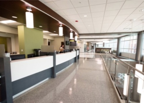 The new Medical Pavilion includes outpatient services such as cardiology, gastroenterology, neurology, urology, and orthopedics. In addition, the facility has more than 100 examination rooms, as well as space for medical oncology, physical therapy, and radiology/laboratory services.