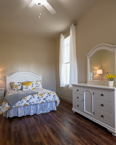The community provides residential units with home-style front porches with high-end features inside and out, entertainment and dining areas, activity promenade, industrial-style kitchen, multi-purpose theatre, and a laundry room.