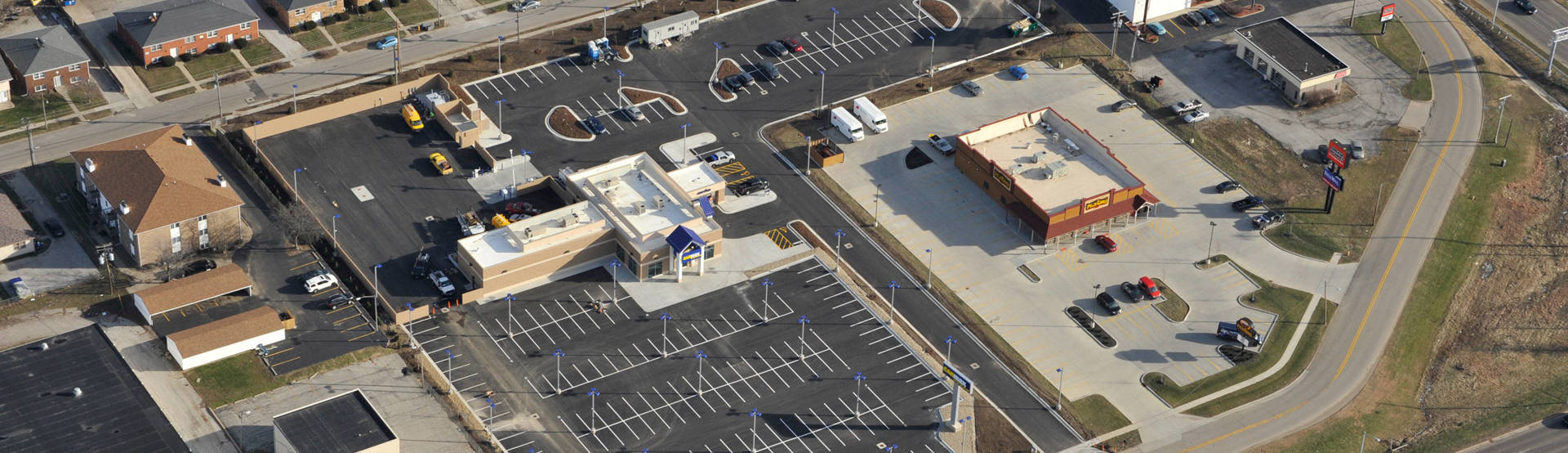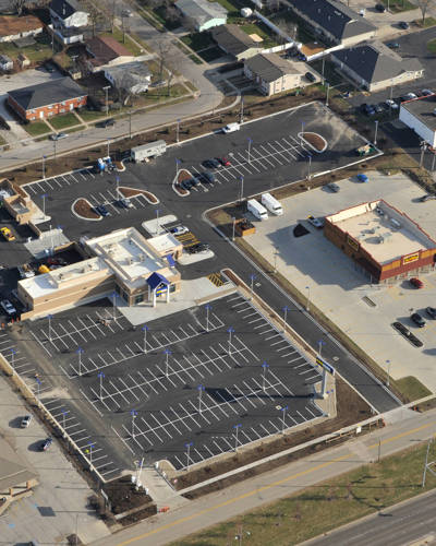 Site work included construction of a 152-car sales display asphalt lot, a 76-car staging area with a masonry screened wall, a 59-car customer/employee parking lot, and an above-ground fuel tank.
