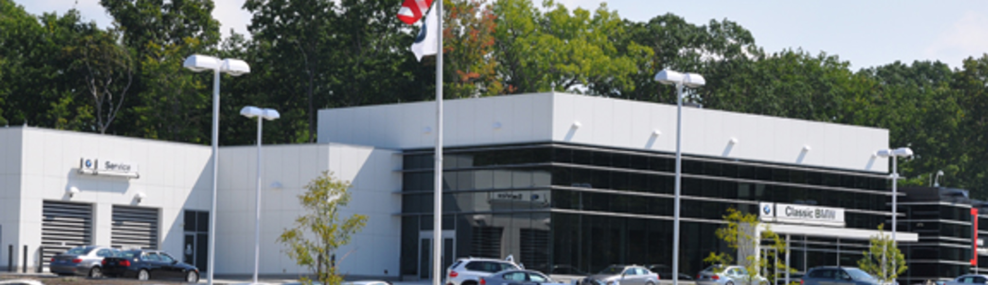The building's service center uses imported wear-resistant German Clinker floor covering and includes 20 service bays with a car wash, pre-detail, and tire and brake areas. The dealership includes an extensive interior and exterior package to distinguish the BMW and MINI brands. The interior finishes included porcelain tile, millwork, plaster finish, and corian tops. The exterior includes large glass and masonry areas, Alucobond aluminum composite material, and wedge sun shade panels to accentuate its dramatic ultra-contemporary design and provide the ultimate customer service and luxury experience.