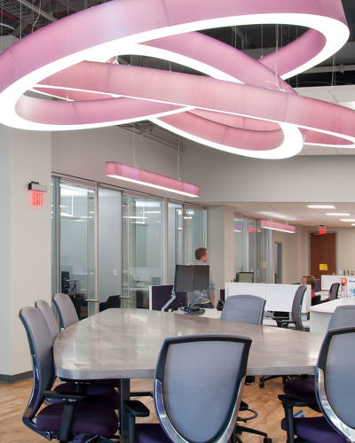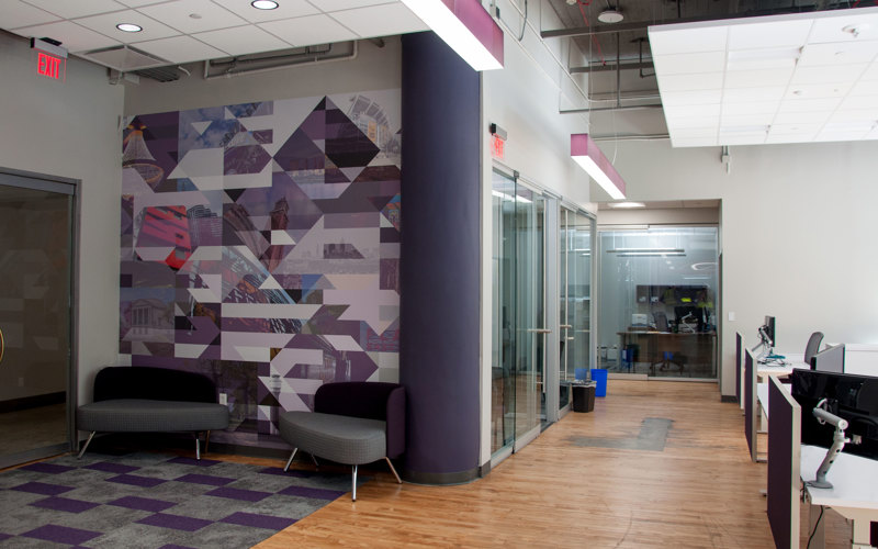 Designed by GPD Group, the tenant fit-out of GPD Group's new offices included selective demolition, salvaging, and refinishing of existing hardwood floors; the build-out of 11 new offices, 2 conference rooms, and a work area/kitchen; and the reconfiguration of mechanical, electrical, and plumbing systems throughout the space. The project also included drop ceiling "clouds" located below the exposed structure to add modern architectural lighting while exposing the historic nature of the building.