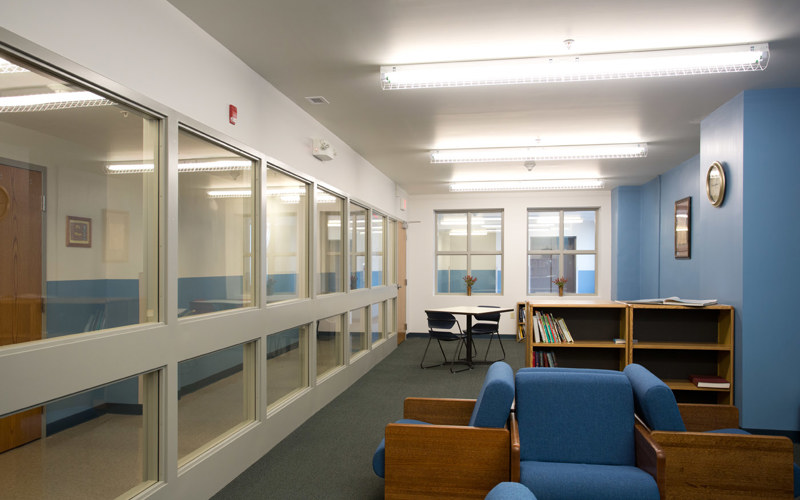 The exterior of the building included installation of new windows, restoration of the granite façade and repainting. The project also included repaving the parking lot and adding a new vestibule with a passenger elevator.