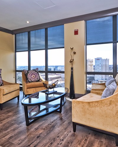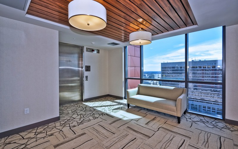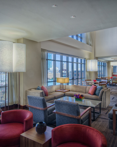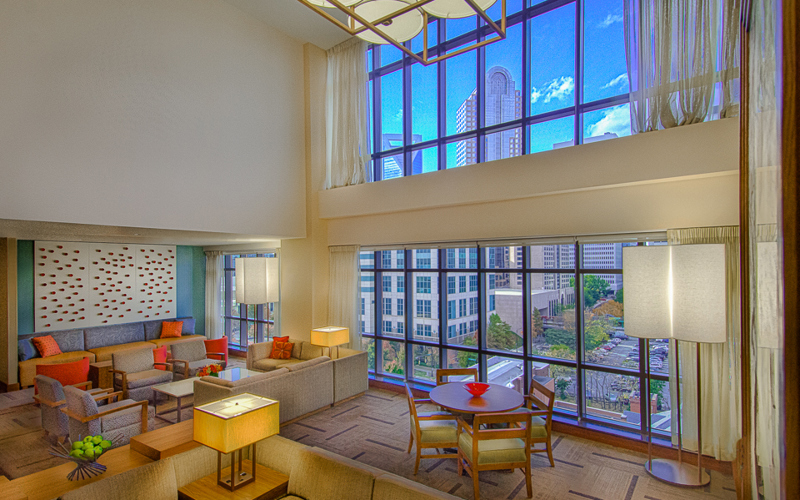 At the time of completion, the development featured Chartlotte’s first rooftop restaurant - Fahrenheit, valet parking, hotel and condominium resident amenities, fitness area, clubroom, and a rooftop pool.