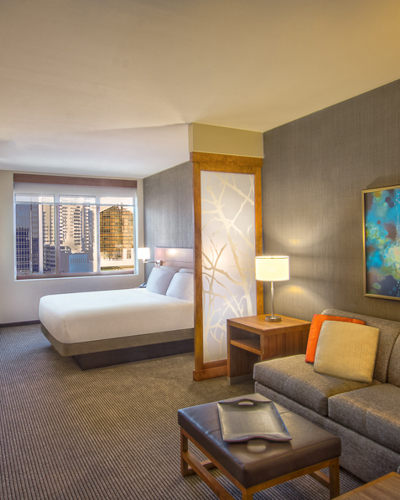 The Hyatt Place Hotel opened to the public in October 2013 and the SKYE Condominiums’ owners took possession in December 2013. In March 2014, Food Network Star Chef Rocco Whalen opened his sixth restaurant venue (and second Fahrenheit Restaurant overall) on the rooftop of the SKYE Condominiums & Hyatt Place Hotel building.