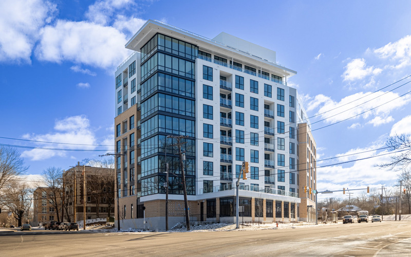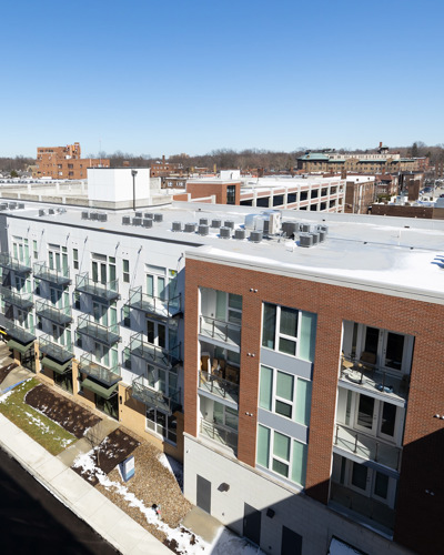 Cleveland Construction, Inc. provided construction management services for The Ascent at Top of the Hill mixed-use development in Cleveland Heights, Ohio. The project consisted of two buildings comprised of 292,600 square-feet of residential apartment space (261 units total), amenity space, and ground-level retail space.