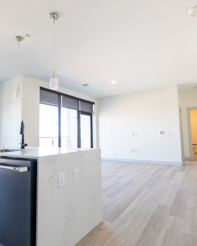 The East Building is a 4-story wood-framed structure consisting of 148 apartment units encompassing a total of 147,214 square-feet of space, including 4,000 square-feet of retail space and 6,100 square-feet of amenity space, including a private courtyard, a fitness center bicycle storage, a pet spa, and a dog park. The East Building was built to wrap around a new 5-story, 163,147 square-feet attached post-tensioned parking garage with 509 parking spaces.