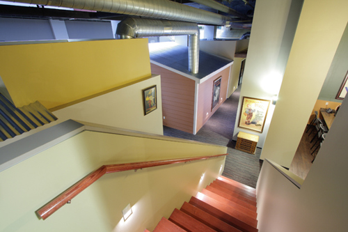 Cleveland Construction met and conquered many challenges in order to incorporate an open work environment that encourages the level of worker collaboration often required within the advertising industry. One challenge involved coordinating Cleveland Construction’s schedule with the coinciding construction of the base building work.