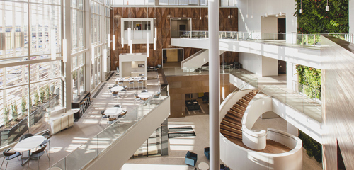The new care center provides radiation, surgical, and medical oncology services, as well as a range of outpatient cancer therapies and support services such as precision medicine, genetic counseling, nutrition education, and survivorship programs. In addition, the building housed cutting-edge research, clinical trials, and emerging treatment protocols.